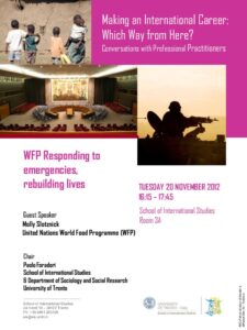Far carriera al Programma Alimentare Globale! 15/11/2012 All'interno del ciclo: "Making an International Career: Which Way from Here?", la Scuola di Studi Europei e Internazionali presenta martedi` 20 novembre alle ore 16:15,