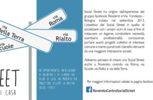 Social Street a Rovereto 30/06/2014 Corre l’anno 2014: essere “social” assume il significato di partecipare attivamente nei vari Facebook, Twitter e Instagram, comunità virtuali dove condividere passioni, interessi, riflessioni di