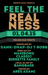 “Birrette Family presenta”: si comincia. 01/04/2015 Oggi, 1 Aprile, alle ore 21, appuntamento con l'hip hop al Feeling di piazza Garzetti: stiamo parlando “Feel the Realness”, un evento che porta in