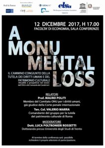 A Monumental Loss: Elsa Trento approda all’università! Matteo Filippini 06/12/2017 Elsa Trento, un’associazione culturale indipendente che collabora con UNESCO, approda nel mondo dell’università martedì 12 Dicembre, alle ore 17, presso la Sala Conferenze della Facoltà