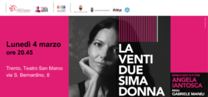 Al teatro San Marco lo spettacolo “La Ventiduesima Donna”, di Angela Iantosca redazione 26/02/2024 Nel monologo “La Ventiduesima Donna”, la giornalista e scrittrice Angela Iantosca racconta il mondo degli ultimi, del disagio, dei figli delle mafie, del carcere, di