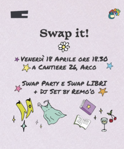 A Cantiere26 arriva Swap it! Ludovica DeAngelis 18/04/2025 Venerdì 18 aprile alle ore 18:30, presso Cantiere26 di, si terrà la serata “Swap it!” in collaborazione con Smarmellata. Lo swap party prevedrà lo scambio