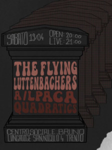 Al Bruno arrivano i “Flying Luttenbachers” Ludovica DeAngelis 18/04/2025 Sabato 19 aprile alle ore 20:00, presso il Centro Sociale Bruno, si esibirà la band noise rock “Flying Luttenbachers”, direttamente da Chicago. A seguire, si