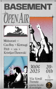Il Basement porta la musica a Sociologia Ludovica DeAngelis 27/04/2025 Mercoledì 30 aprile alle ore 20:00, presso via Verdi di Trento di fronte al Dipartimento di Sociologia, si terrà la serata Basement Open Air. Gli