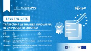 Venerdì 9 maggio anche Trentino Sviluppo si unisce simbolicamente alla Festa dell’Europa con un appuntamento formativo dedicato all’europrogettazione, che si terrà nei nuovi spazi “TSpace”