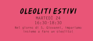 Oleoliti a La Foresta Ludovica DeAngelis 22/06/2025 Martedì 24 giugno alle ore 16:30, presso La Foresta di Rovereto, per il giorno di San Giovanni si terrà l’evento “Oleoliti estivi”. Per maggiori informazioni: