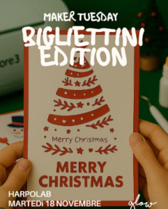 Arriva il Natale ad Harpo Lab Ludovica DeAngelis 14/11/2025 Martedì 18 novembre alle ore 18:00, presso Harpo Lab di Trento, si terrà il Maker Tuesday – Bigliettini Edition, il workshop organizzato dall’Associazione Culturale Glow