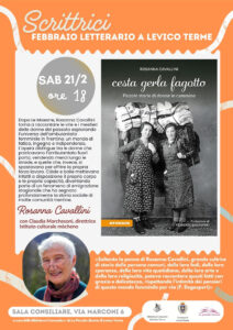 Ultimo incontro di “Scrittrici” a Levico Terme Giada Vicenzi 18/02/2026 Sabato 21 febbraio alle 18.00 in sala consiliare a Levico Terme si chiude il piccolo trittico di incontri letterari SCRITTRICI, promosso in collaborazione con la