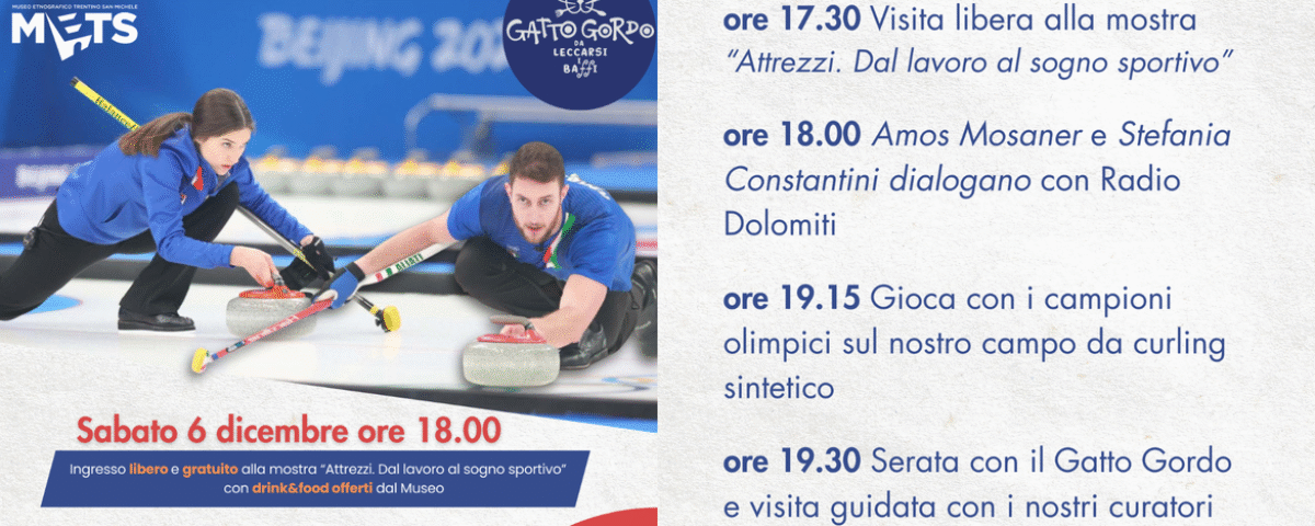 Sabato 6 dicembre il METS di San Michele all’Adige inaugura il programma di eventi collaterali alla mostra “Attrezzi. Dal lavoro al sogno sportivo”, aperta dal 5 dicembre al 31 marzo. Il primo appuntamento, “Young4Curl”, porta al Museo due ospiti d’eccezione: Amos Mosaner e Stefania Constantini, campioni olimpici nel doppio misto a Pechino 2022 e freschi campioni del mondo 2025 a Fredericton, primo oro iridato nella storia italiana del curling.