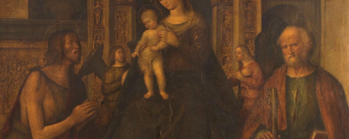 Si tratta della Pala d’altare del pittore vicentino Francesco Verla (1470/1474–1521), realizzata nel 1517 per il committente don Ettore da Salerno. L’opera corrisponde alla pala che, fino alla fine del XVIII secolo, si trovava sul primo altare a destra della chiesa parrocchiale di Villa Lagarina, successivamente alienata e dispersa sul mercato antiquario, finora nota soltanto attraverso due fotografie storiche: fra il XIX e l’inizio del XX secolo transitò per varie collezioni lombarde fino al 1963, quando lasciò definitivamente il territorio nazionale e fu venduta da Christie’s a Londra a un’acquirente di New York, dove si trovava fino a oggi.