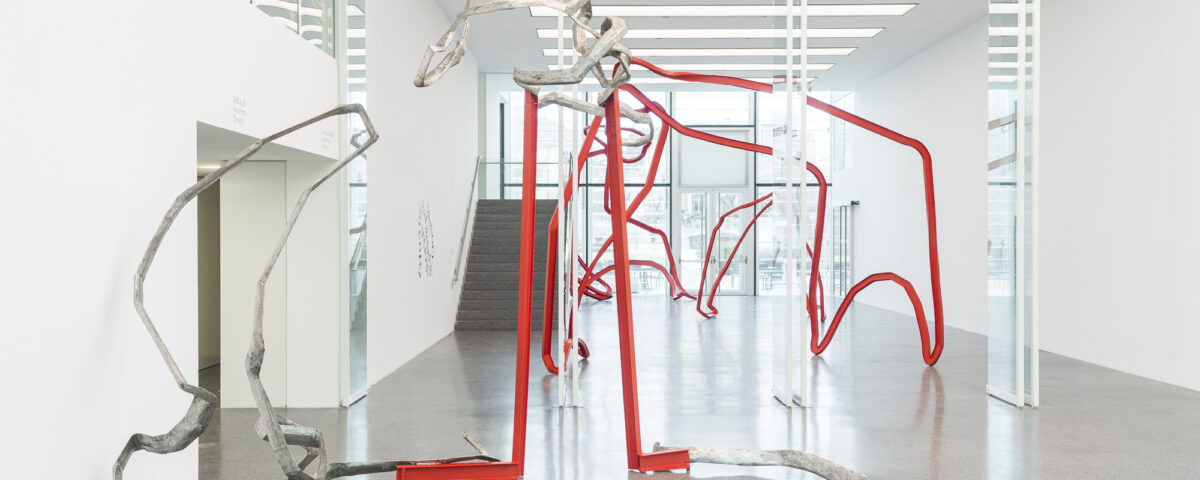 In Museion Passage sono esposte quattro grandi sculture – Hommage, Passage, Geöffnet-aperto e Pro-tetto – realizzate in acciaio inox e profili industriali, piegati con precisione artigianale fino a trovare un equilibrio tra massa e leggerezza. Il rosso, cifra ricorrente del suo linguaggio, unifica l’intervento. Collocate senza piedistallo, le opere accompagnano il pubblico lungo il percorso, integrandosi nel flusso dello spazio.