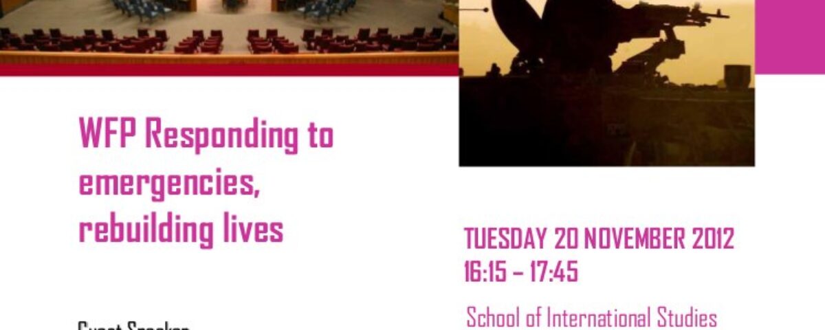 All'interno del ciclo: "Making an International Career: Which Way from Here?", la Scuola di Studi Europei e Internazionali presenta martedi` 20 novembre alle ore 16:15, una Guest Lecture dal titolo: “WFP—Responding to emergencies, rebuilding lives". La conferenza si terrà nell'Aula 3A, al terzo piano della sede dell Scuola, in via Verdi. La guest Speaker sarà Molly Slotznick e l'introduzione sarà affidata al Professor Paolo Foradori.