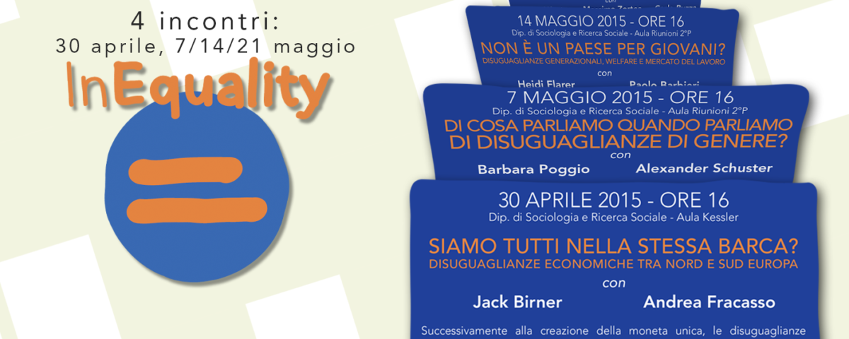 I successivi appuntamenti sono in programma il giovedì successivo, 7 maggio, sempre alle 16, nella sala riunioni del Dipartimento di Sociologia: i docenti Alexander Schuster e Barbara Poggio si confronteranno in un dibattito dal titolo “Di cosa parliamo quando parliamo di diseguaglianze di genere”.