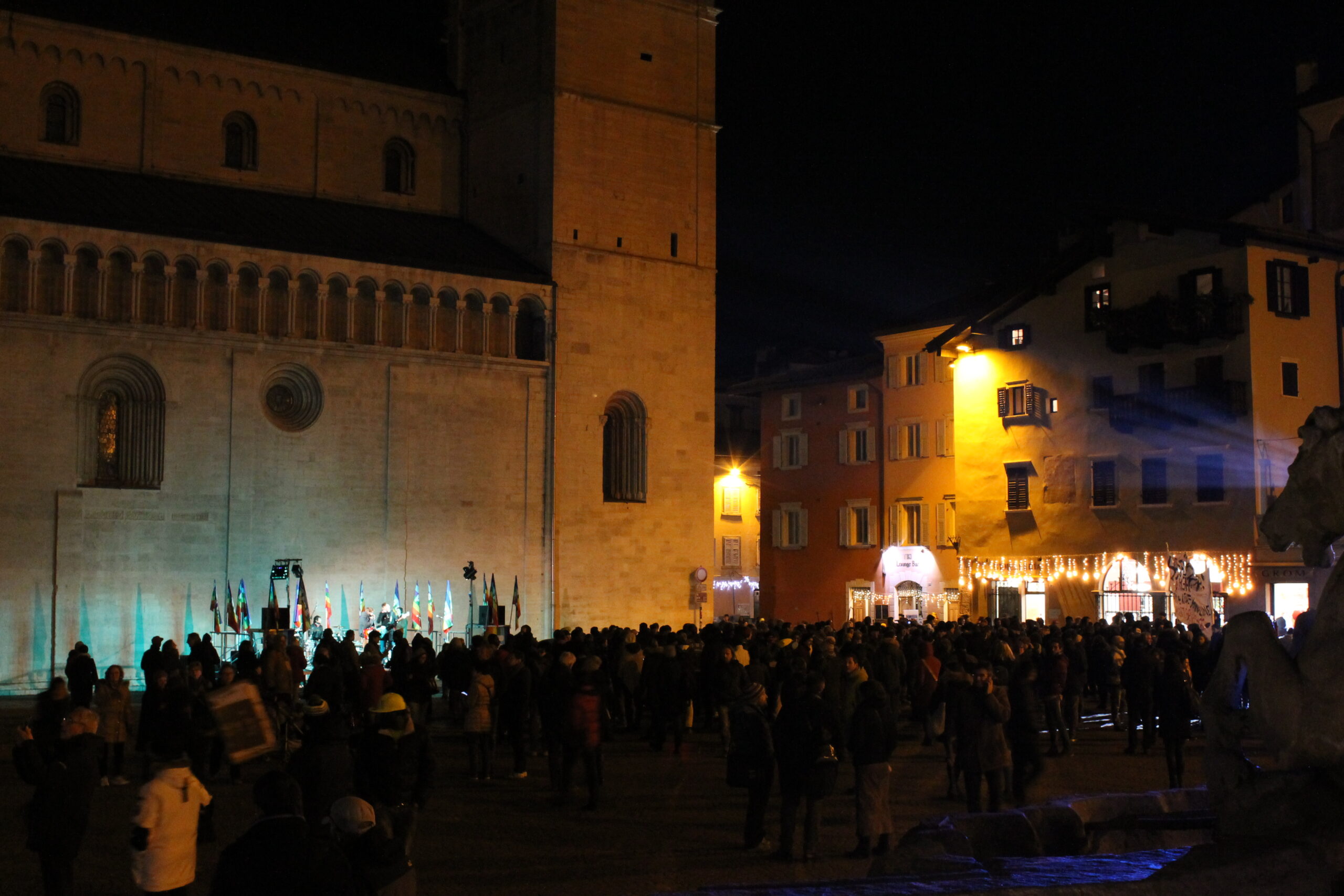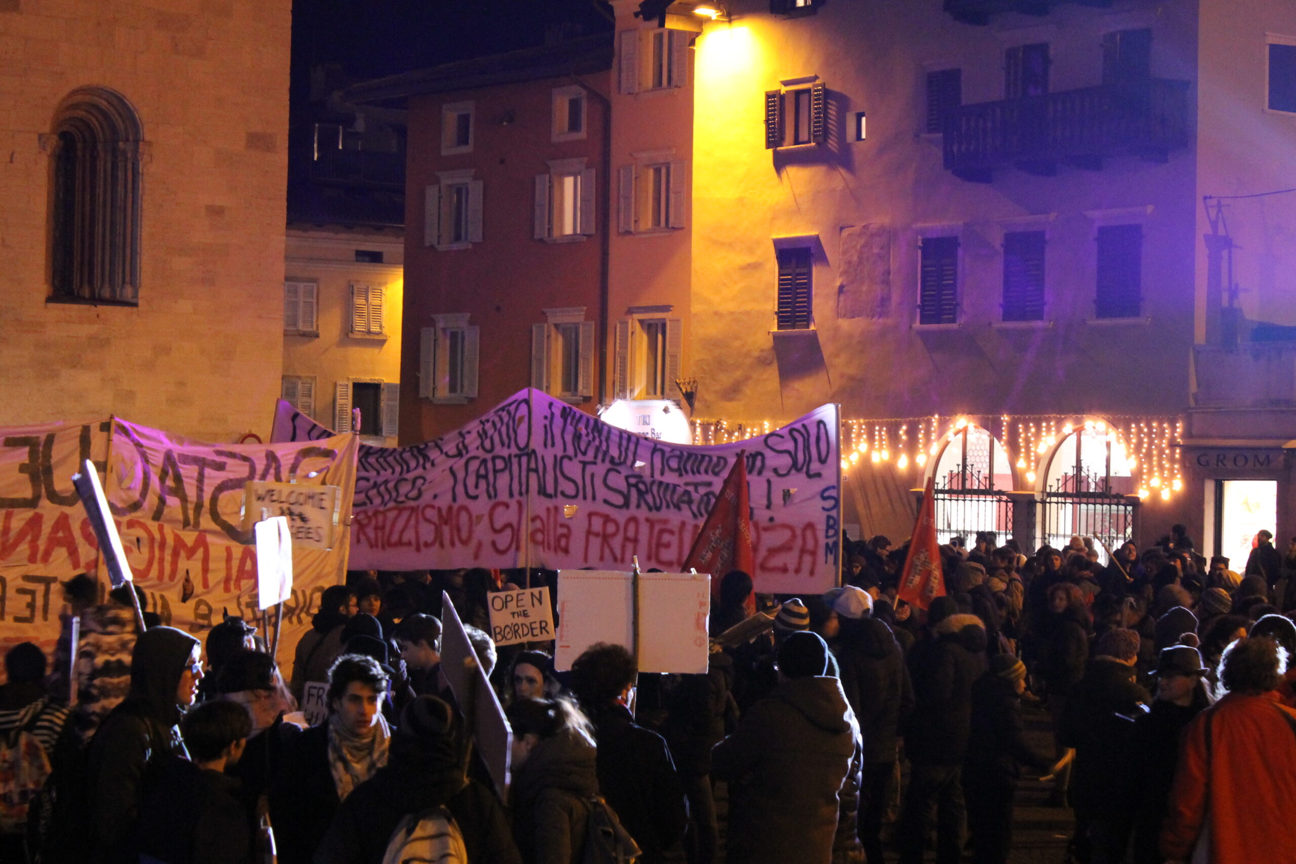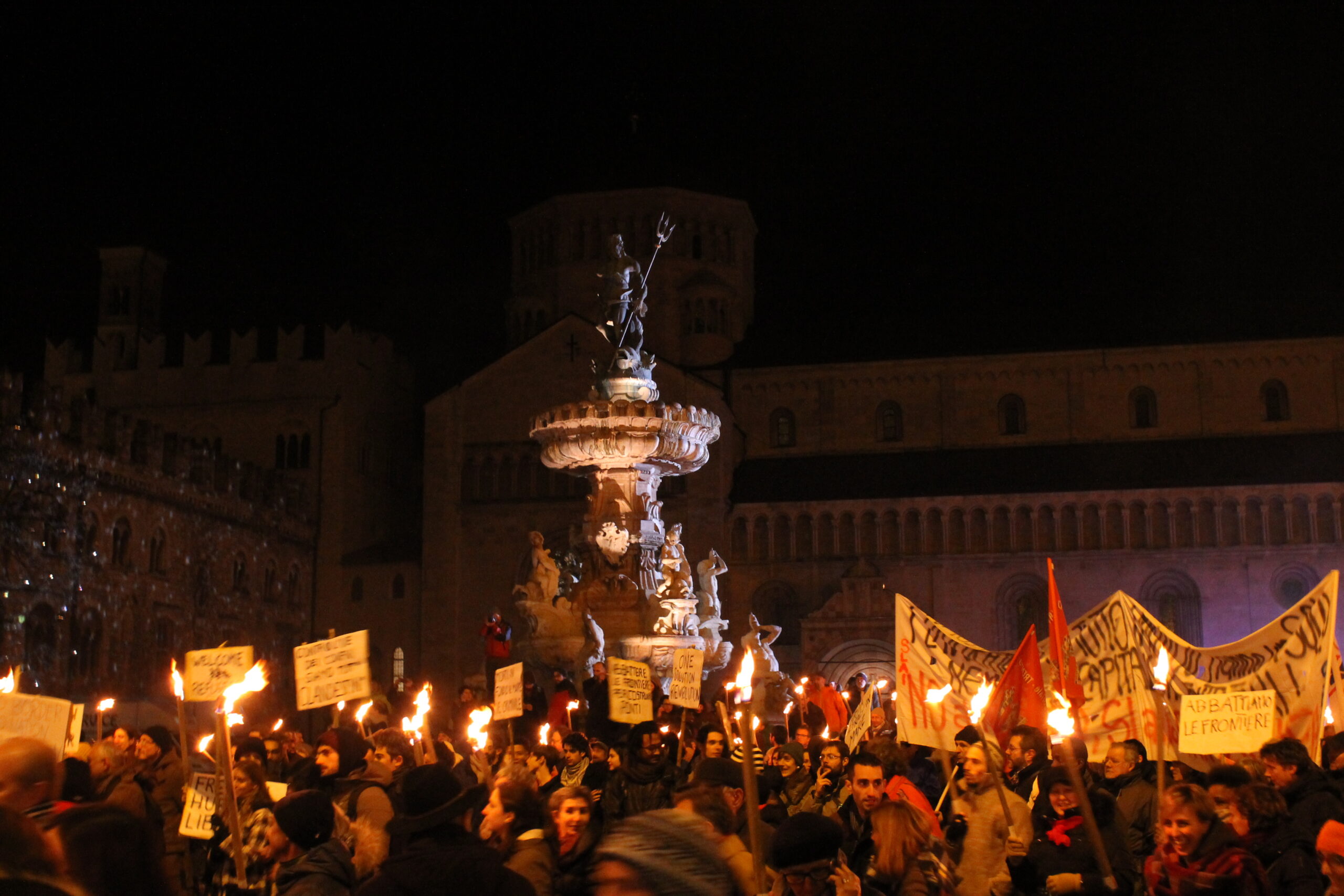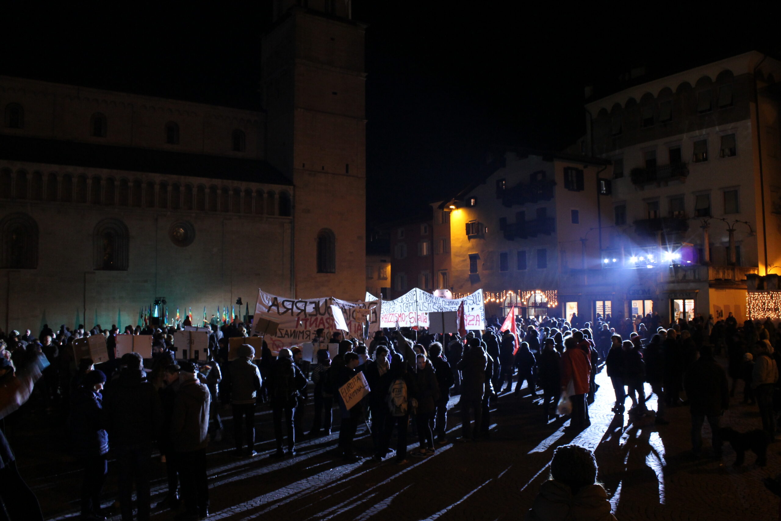 Il 6 dicembre alle 18:30 è iniziata in piazza Duomo l'annunciata fiaccolata per promuovere l'accoglienza in Trentino: più di 1500 persone hanno ascoltato il discorso di Soma, il richiedente asilo che dal palco ha raccontato i suoi 6 anni già trascorsi in Italia; dopodichè sono stati alzati gli striscioni ed accese le fiaccole, e il corteo ha iniziato a muoversi in via Belenzani.