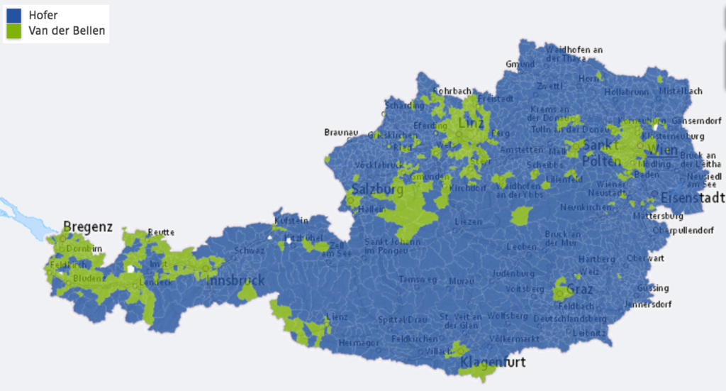 Non è tutto rose e fiori, però. Alexander, economista, lo capirà bene che la situazione in cui va alla presidenza non è delle migliori: un governo spaccato, con un nuovissimo cancelliere che va a sostituire il dimissionario collega, ma soprattutto con uno Stato che, a guardare la cartina dei risultati del voto al ballottaggio di domenica, è estremamente polarizzato verso destra, con le sole città che tengono duro.