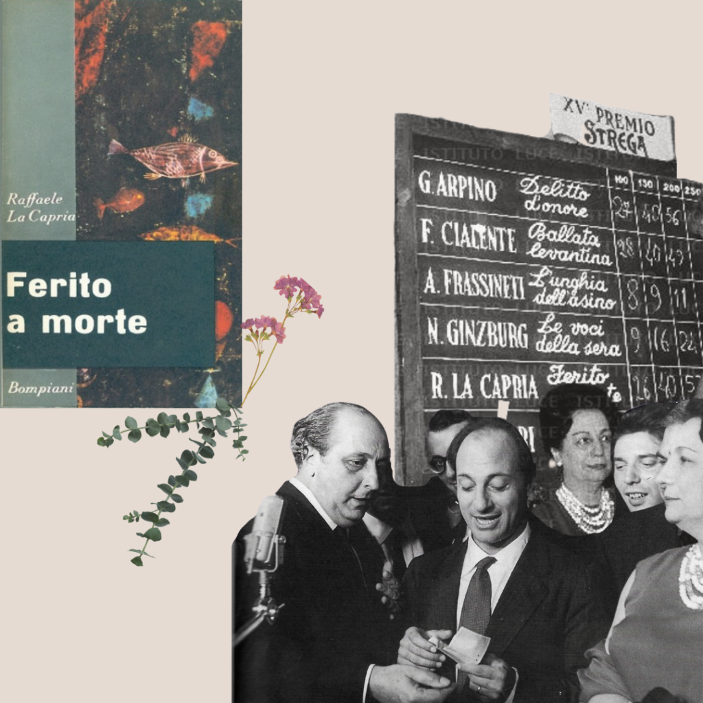 È il 6 luglio 1961 quando il presidente del seggio Luigi Barzini scandisce il nome di Raffaele La Capria per novantasei volte. È lui il vincitore del quindicesimo Premio Strega con il romanzo Ferito a morte, seguito, per un solo voto in meno, da Giovanni Arpino e Fausta Cialente. Sembrava che i tre scrittori avessero tagliato insieme il traguardo.