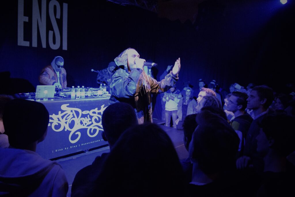 Sì, assolutamente. L'ambiente hip hop, anche se ha avuto un'esplosione in questi ultimi tempi, in ambito underground resta comunque una piccola/grande famiglia e questo si rispecchia in situazioni come il freestyle di sabato sera. Tutto diventa una festa collettiva. Infatti, a livello di risposta del pubblico, è stata una serata ottima: la gente si è divertita sia durante il concerto di Ensi sia prima. E questo è l'importante.