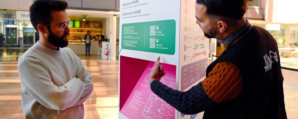Mercoledì 3 dicembre, in occasione della Giornata Internazionale delle persone con disabilità, il MUSE – Museo delle Scienze di Trento presenta il nuovo totem informativo dedicato all’accessibilità, collocato nell’atrio del museo e progettato per offrire a tutte e tutti un’esperienza di visita più autonoma, chiara e accogliente. Il dispositivo – un prisma triangolare in legno alto due metri – raccoglie mappe tattili, guide in linguaggio Easy to Read e in simboli CAA, materiali per persone con bisogni comunicativi complessi e QR code che rimandano a contenuti di approfondimento e video in LIS/IS.