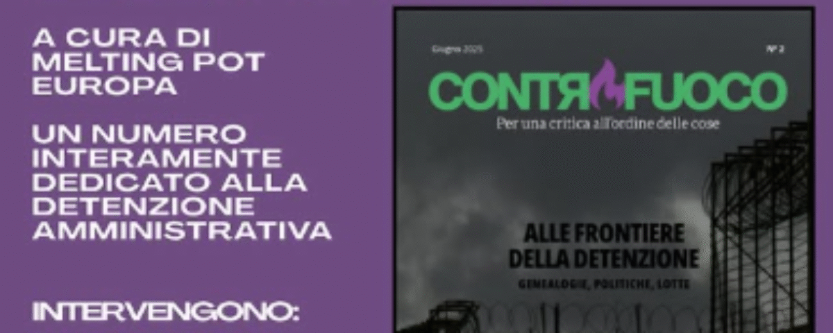 Giovedì 20 novembre alle ore 17:30, presso l’Aula Kessler del Dipartimento di Sociologia e di Ricerca Sociale dell’Università di Trento, si terrà la presentazione della nuova rivista Controfuoco, a cura di Melting Pot Europa. Durante il talk interverranno Omid Firouzi Tabar, docente e attivista dell’Università degli Studi di Padova, e Francesca Esposito, attivista e ricercatrice presso l’Università di Bologna.
